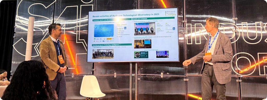 Durante la jornada, Emilio Martínez Gavira, responsable de emprendimiento e innovación abierta de Enagás, y José Alfredo Lana Calvo, coordinador de Innovación y Desarrollo Tecnológico, intervinieron en el Industry Corner con la ponencia “Technological Challenges of Enagás and Approach to Open Innovation with Enagás Emprende”, donde compartieron el modelo corporativo de innovación de Enagás, la estrategia de Enagás Emprende y el papel del Observatorio Tecnológico del Hidrógeno como herramienta clave para identificar oportunidades disruptivas dentro del ecosistema energético.